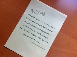 Hanno aggiunto un breve pensiero e, questa sera, ognuno di loro leggerà al proprio papà la filastrocca.